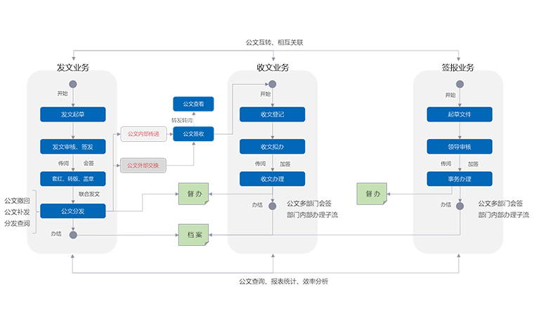 全生命周期公文管理,致力于提升政令傳達(dá)效率。收發(fā)文互轉(zhuǎn)和上下級(jí)貫通,保障組織全面協(xié)同,同時(shí)與日程、督辦和會(huì)務(wù)進(jìn)行業(yè)務(wù)掛接,從業(yè)務(wù)上實(shí)現(xiàn)全面協(xié)同。