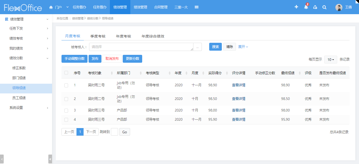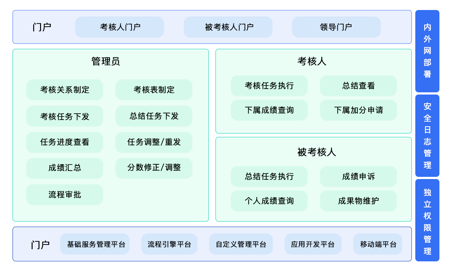 考核關(guān)系制定、考核任務(wù)下發(fā)、總結(jié)任務(wù)下發(fā)、任務(wù)執(zhí)行、成績評分的所有環(huán)節(jié),實(shí)現(xiàn)真正的績效全過程線上管理;