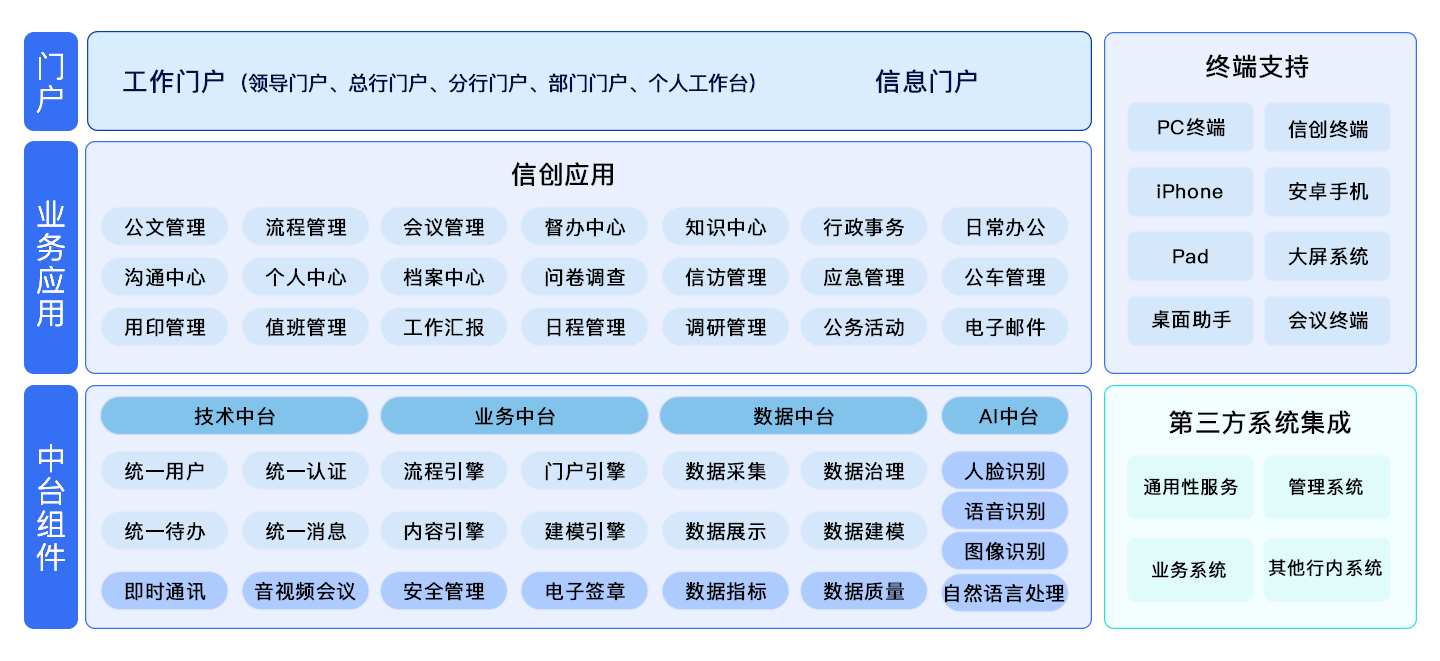 基于微服務(wù)架構(gòu)技術(shù)、容器技術(shù)、分布式緩存技術(shù)、前后端分離設(shè)計(jì),全面滿足企業(yè)未來5-10年的信心化技術(shù)處于領(lǐng)先,同時也充分滿足大企業(yè)用戶大集中部署需要考慮的高并非、高性能等要求。