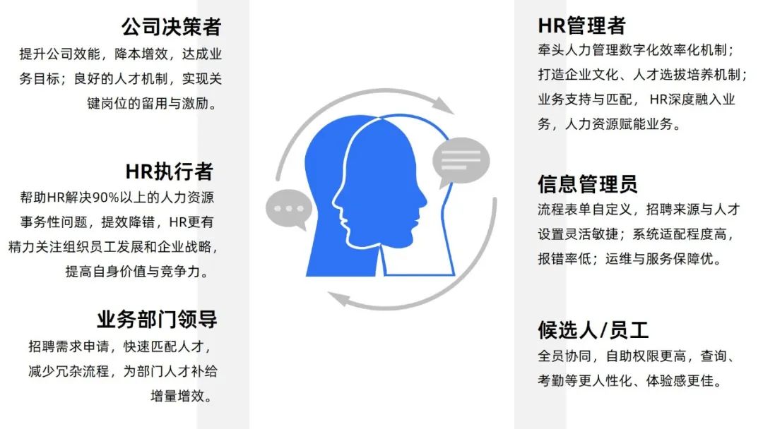幫助HR收集維護(hù)求職者簡(jiǎn)歷,并快速便捷的分類管理簡(jiǎn)歷、發(fā)起相關(guān)流程,以簡(jiǎn)歷為核心,構(gòu)建人才庫(kù),可以快速調(diào)動(dòng)資源,填補(bǔ)崗位需求。