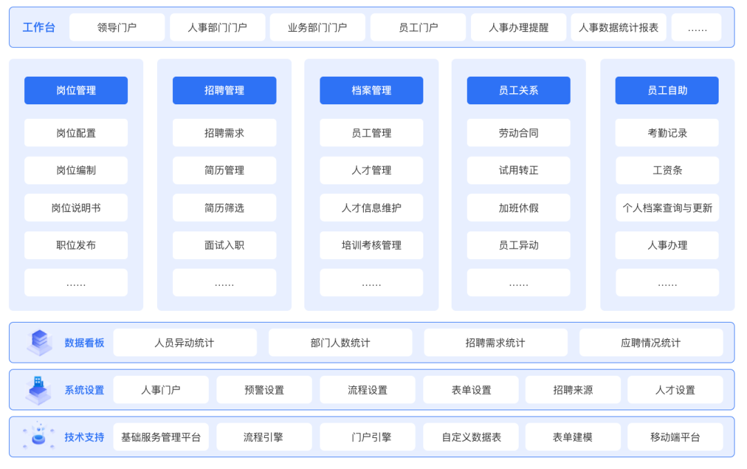 萬(wàn)戶軟件Flex人力資源管理系統(tǒng),將人力資源全鏈路數(shù)字化,串聯(lián)崗位配置、員工檔案、招聘管理、員工關(guān)系、勞動(dòng)合同、人才管理、考勤管理、工資管理等人力資源全景,加強(qiáng)數(shù)據(jù)安全性,讓HR更高效,讓人才更匹配,從人力資源角度構(gòu)建和提升企業(yè)核心競(jìng)爭(zhēng)力。