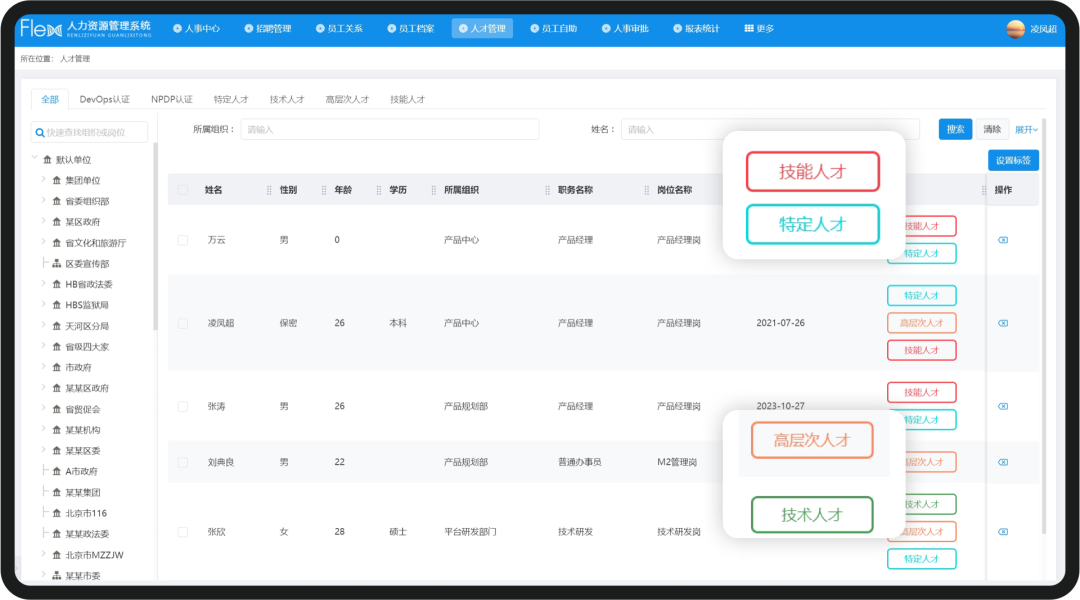 自定義設(shè)置人才標(biāo)簽,將人才檔案數(shù)據(jù)化,為后續(xù)開(kāi)展人才培養(yǎng)、選拔任用提供依據(jù)。