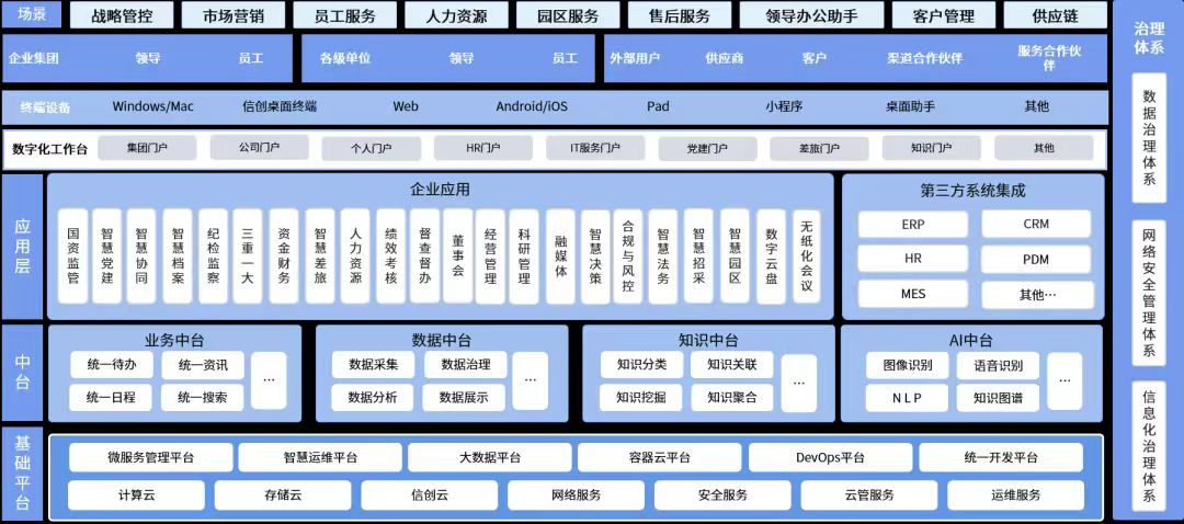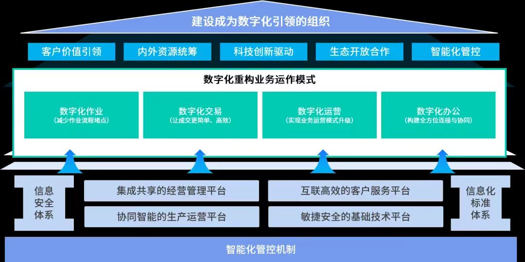 數(shù)字化轉(zhuǎn)型是一個(gè)持續(xù)循環(huán)迭代更新的過(guò)程,從目標(biāo)規(guī)劃到行動(dòng)實(shí)施,到結(jié)果評(píng)估,再到復(fù)盤優(yōu)化?;诮y(tǒng)一的數(shù)據(jù)底座、數(shù)字化平臺(tái)以及自主創(chuàng)新的技術(shù)體系支撐,實(shí)現(xiàn)業(yè)務(wù)與IT一體化管理,完成數(shù)字化作業(yè)、數(shù)字化交易、數(shù)字化運(yùn)營(yíng)、數(shù)字化辦公的業(yè)務(wù)運(yùn)作模式重構(gòu)。以智能化管控機(jī)制搭建集成共享的經(jīng)營(yíng)管理平臺(tái)、協(xié)同智能的生產(chǎn)營(yíng)運(yùn)平臺(tái)、互聯(lián)高效的客戶服務(wù)平臺(tái)與敏捷安全的基礎(chǔ)技術(shù)平臺(tái),推動(dòng)企業(yè)實(shí)現(xiàn)內(nèi)外資源統(tǒng)籌、科技創(chuàng)新驅(qū)動(dòng)、客戶價(jià)值引領(lǐng)、生態(tài)開(kāi)放合作,建設(shè)成為數(shù)字化引領(lǐng)發(fā)展的企業(yè)模式。數(shù)字化轉(zhuǎn)型過(guò)程中,同時(shí)加強(qiáng)加快信息技術(shù)應(yīng)用創(chuàng)新技術(shù)路線的引用,堅(jiān)持科技自立自強(qiáng),充分發(fā)揮各級(jí)單位和信創(chuàng)生態(tài)伙伴的能動(dòng)性,依托信創(chuàng)生態(tài)服務(wù)體系化能力,推動(dòng)信息技術(shù)應(yīng)用創(chuàng)新與數(shù)字化的融合建設(shè)。