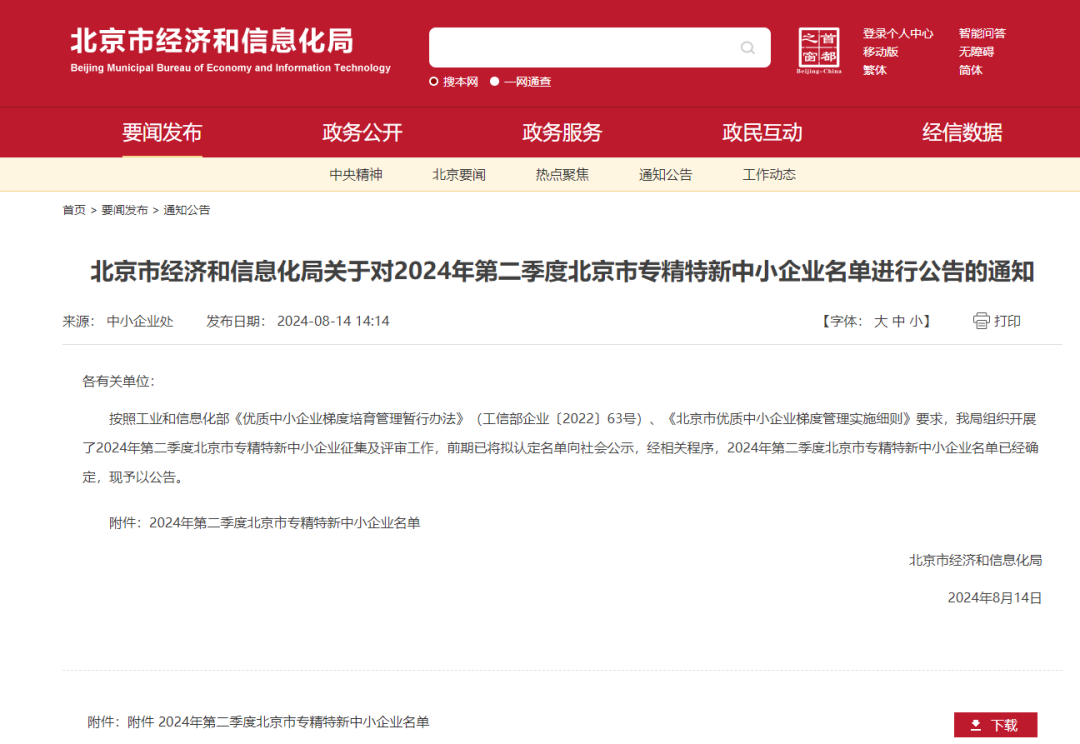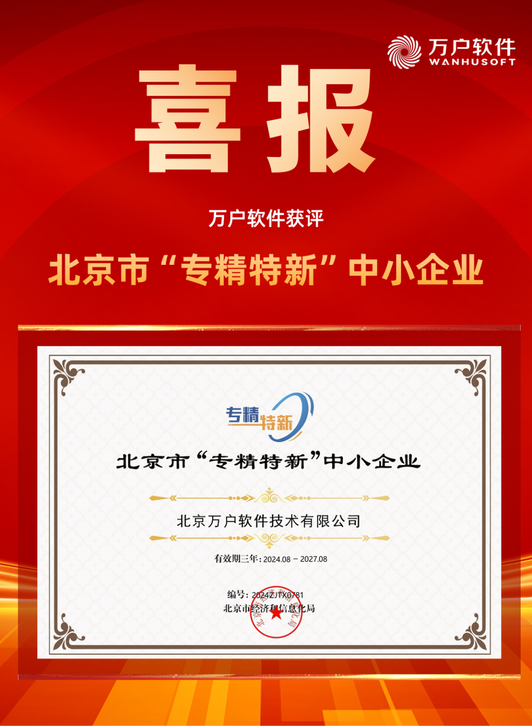 近日,北京市經(jīng)濟(jì)和信息化局發(fā)布了《北京市經(jīng)濟(jì)和信息化局關(guān)于對(duì)2024年第二季度北京市專(zhuān)精特新中小企業(yè)名單進(jìn)行公告的通知》,公告了2024年第二批北京市“專(zhuān)精特新”企業(yè)名單,萬(wàn)戶(hù)軟件成功入選,獲評(píng)北京市“專(zhuān)精特新”中小企業(yè)稱(chēng)號(hào)。
