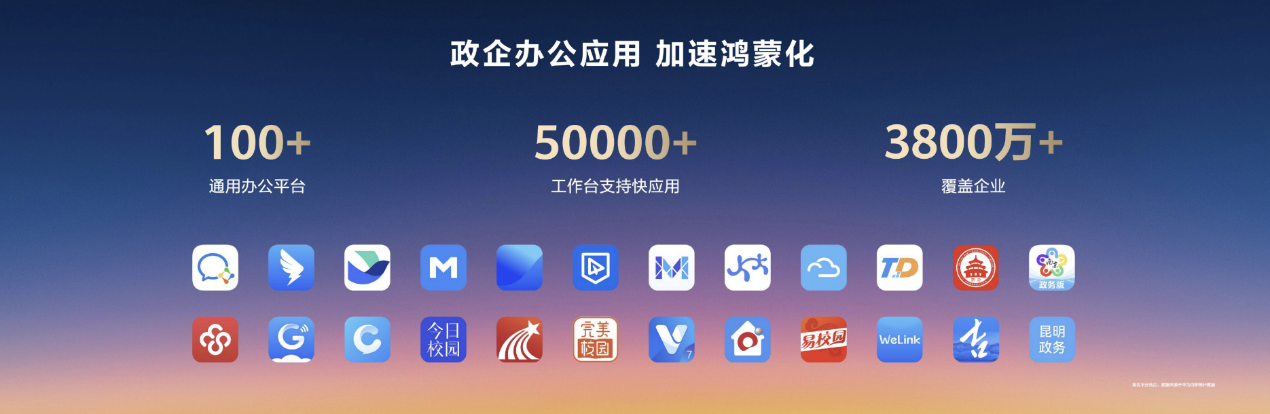 鴻蒙正在加速推進(jìn)政企辦公領(lǐng)域的生態(tài)布局,目前,適配鴻蒙的通用辦公平臺(tái)已超過100家,工作臺(tái)支持快應(yīng)用數(shù)量已突破5萬(wàn)個(gè),覆蓋企業(yè)超3800萬(wàn)家。包括evoPortal7在內(nèi)的眾多通用辦公應(yīng)用的加入,標(biāo)志著鴻蒙在安全、互聯(lián)、智能等方面的創(chuàng)新能力獲得充分認(rèn)可,讓更多政企組織通過“鴻蒙式辦公”實(shí)現(xiàn)安全保障、辦公效率的同步躍升,為政企組織的數(shù)字化轉(zhuǎn)型注入新動(dòng)能。