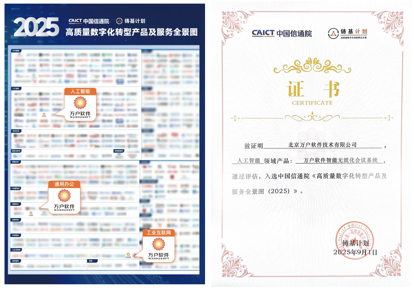 作為值得信賴的數(shù)智化協(xié)同運營專家,萬戶軟件憑借在人工智能、通用辦公、工業(yè)互聯(lián)網(wǎng)領(lǐng)域的卓越表現(xiàn),在1000余家企業(yè)中脫穎而出,入選2025年上半年度“全景圖”,產(chǎn)品實力與創(chuàng)新能力獲國家級權(quán)威機構(gòu)認證。