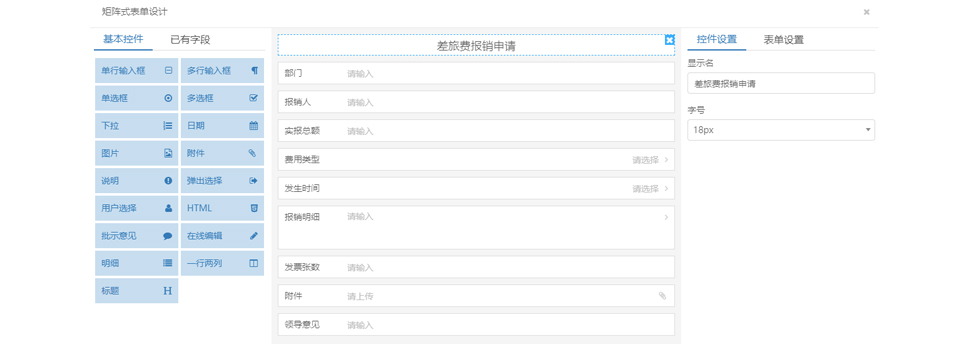 采用所見即所得的表單設(shè)計方式,實時預(yù)覽實際表單展現(xiàn)效果;提供HTML表單和矩陣表單設(shè)計,在PC端和移動端自由切換,同時滿足表單的多變風(fēng)格和快速搭建需求。