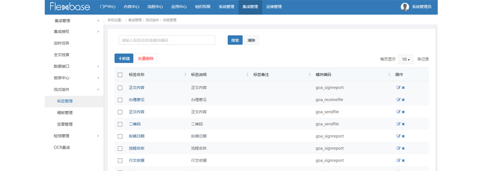 搭建業(yè)務(wù)平臺的應(yīng)用體系,支持快速封裝業(yè)務(wù)菜單、業(yè)務(wù)模塊、業(yè)務(wù)功能、業(yè)務(wù)空間形成業(yè)務(wù)管理系統(tǒng)。支持插拔式應(yīng)用注冊管理,通過Flexbase平臺統(tǒng)一管理,支持擴展應(yīng)用。